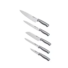 10 ნაწილიანი ნაკრები  მასალა: გერმანული ფოლადი  მოსახერხებელი სადგამი  ერგონომიული სახელურები  ბასრი დანის პირები მაქსიმალური დაცვა დანის პირის დაბლაგვებისგან   ფიზიკური პარამეტრები  ნაკრების წონა: 3.33 კგ  ფერი: ვერცხლისფერი, შავი...