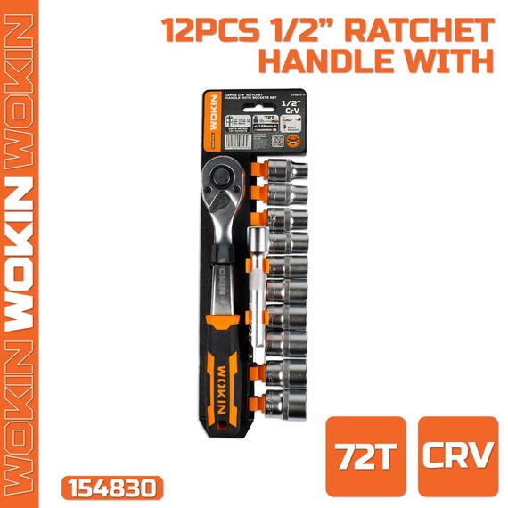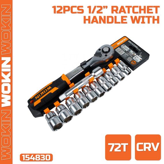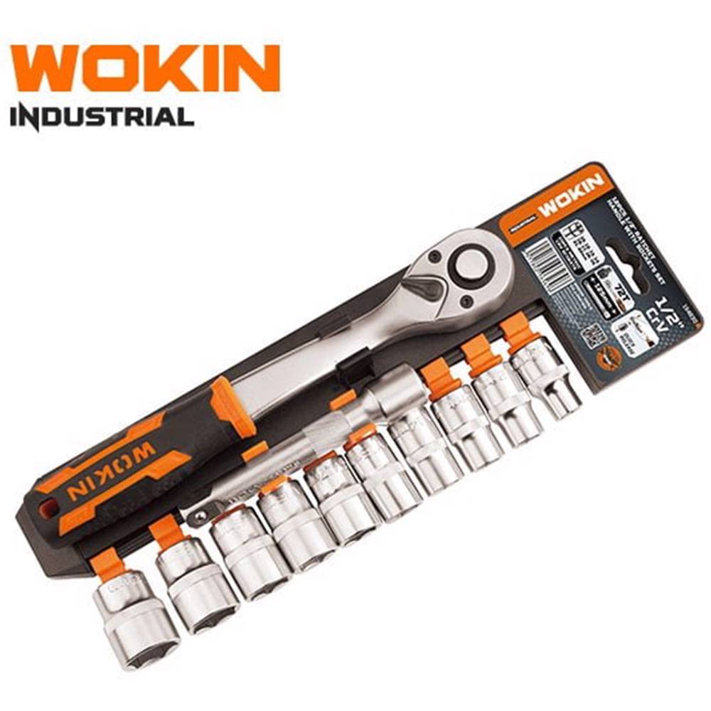 ქანჩის გასაღები სათადარიგო პირებით Wokin 154830, 1/2″, 12Pcs, Drive Ratchet Handle With Sockets Set (INDUSTRIAL), Silver