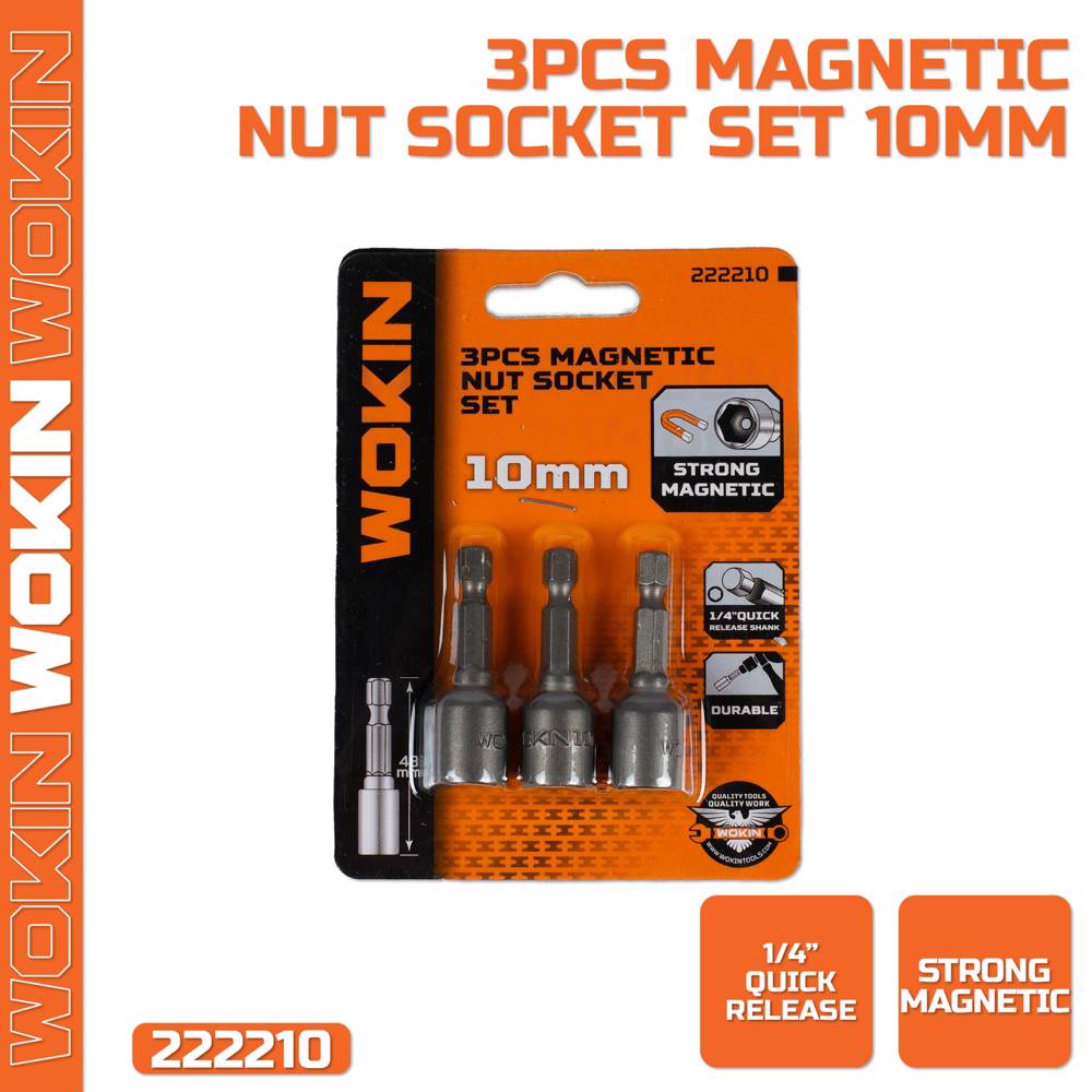 ქანჩის გასაღების მაგნიტური გადამყვანის ნაკრები Wokin 222210, 10mm, 3Pcs, Magnetic Nut Socket Set, Silver