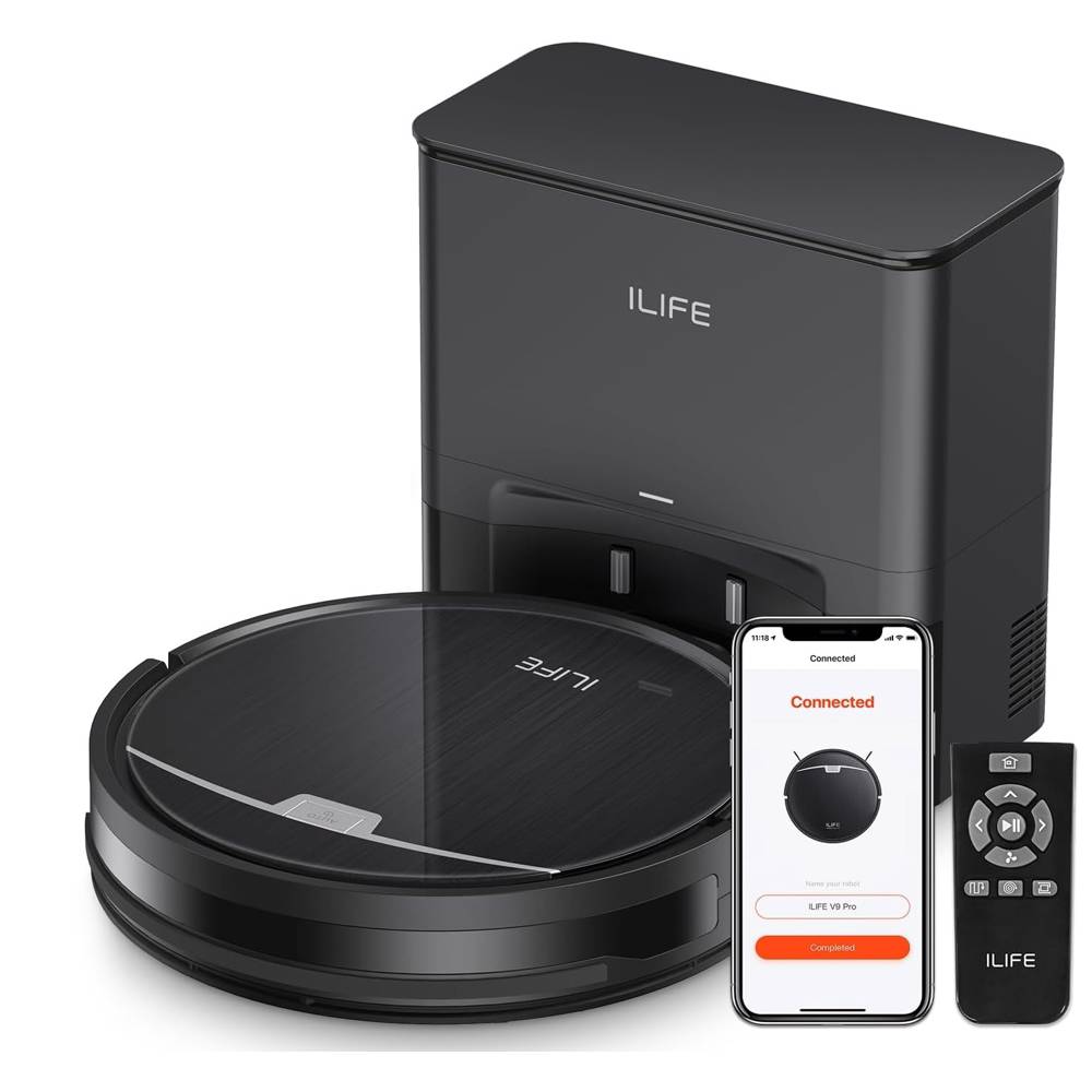 რობოტი მტვერსასრუტი მშრალი და სველი წმენდით Ilife V9 Pro, 3000Pa, Gyroscope Navigation, Self-Empty Robotic Vacuum Cleaner With APP Control, Black