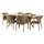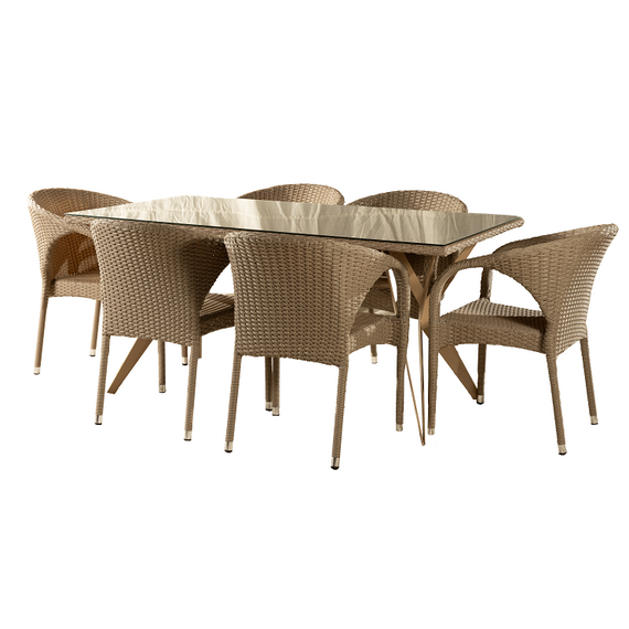 მაგიდა მოწნული შუშით (1.5*0.9) და 6 სკამი ღია ყავისფერი T470+6Y290