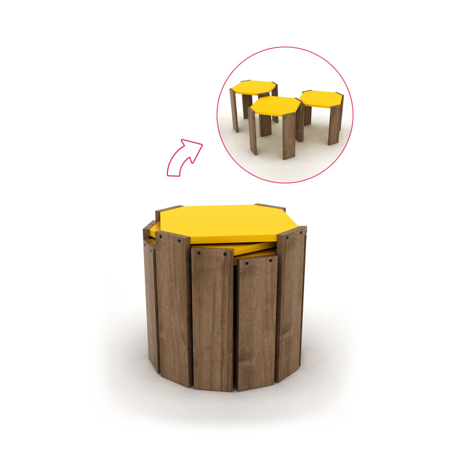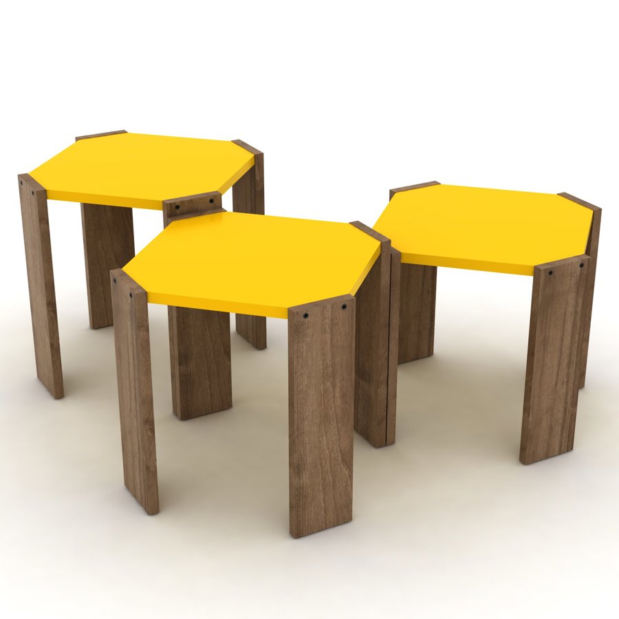 ყავის მაგიდის კომპლექტი Hansel Nesting Table (Walnut-Yellow) RF150106 (41*45*45)
