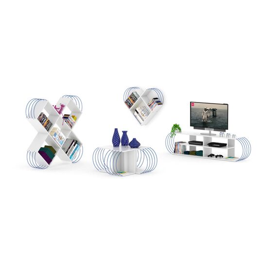 თარო მისაღები ოთახის Case Bookcase (White-Blue) RF170406 (120*25*120)