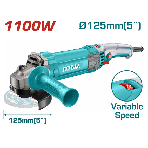 კუთხსახეხი TOTAL TG110125565 (1100 W, 125 MM)