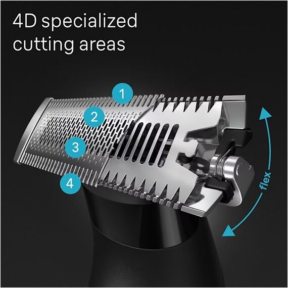 მოქნილი კონსტრუქცია მიყვება სხეულის ფორმებს და ზუსტად ჭრის თმას