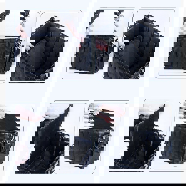 ორგანიზერის ჯიბეების განლაგება მოსახერხებელია, რაც მოქგცემთ შესაძლებლობას თქვენთვის სასურველი ინსტრუმენტი მოათავსოთ ისე, რომ მაგ: სითხე არ დაიღვაროს, ნივთმა სიმყარე, ფორმა შეინარჩუნოს და სხვა.