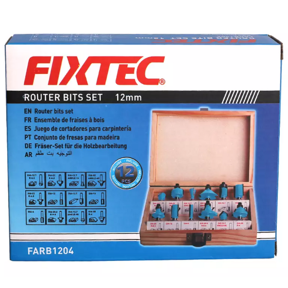 ფრეზის დანების ნაკრები FIXTEC FARB1203 (12 PCS)