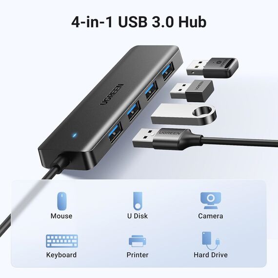 USB ჰაბი UGREEN CM219 (25851), USB 3.0 Hub, Black
