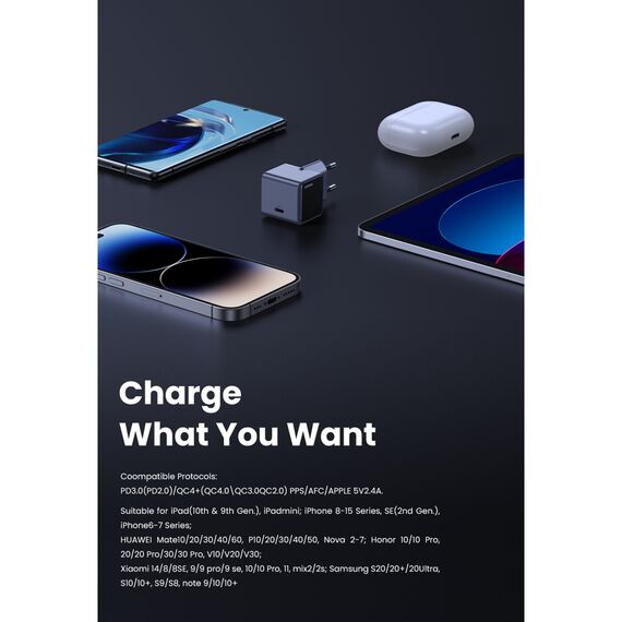 თავსებადი პროტოკოლები: PD3.0 (PD2.0), QC4+ (QC4.0, QC3.0, QC2.0), PPS, AFC, Apple 5V2.4A