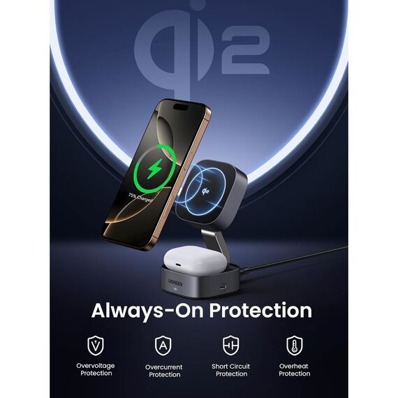 15W iPhone-ისთვის (Qi2) + 5W Airpods-ისთვის