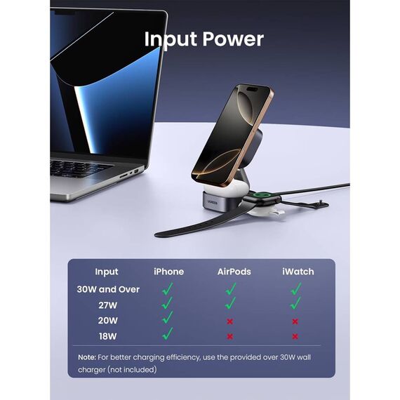 უსადენო დამტენი UGREEN W702 (35316) MagFlow Qi2, 25W, Magnetic Foldable Charging Station, Dark Gray