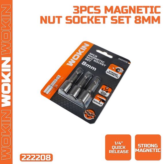 ქანჩის გასაღების მაგნიტური გადამყვანის ნაკრები Wokin 222208, 8mm, 3Pcs, Magnetic Nut Socket Set, Silver