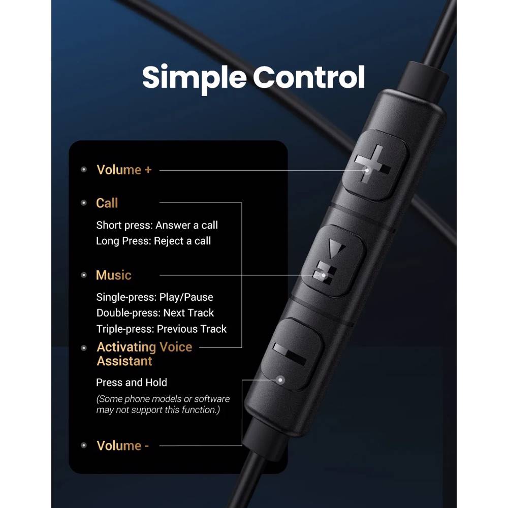 ყურსასმენი UGREEN EP105 (35754), In-Ear Headphones, Wired, Type-C, Black