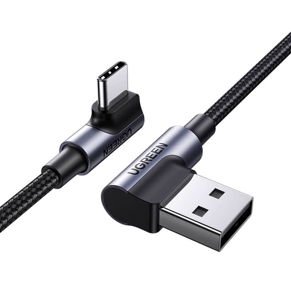 USB კაბელი UGREEN US176 (20857), 18W, USB-A to Type-C 90 Degree, 2m, Space Gray