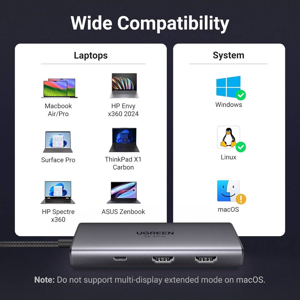 8K UHD დისპლეი: HDMI 2 პორტი USB C ორმაგი HDMI ადაპტერზე