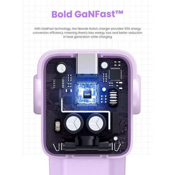 მობილურის დამტენი UGREEN CD361 (35291) Nexode Uno RobotGaN, 65W, USB, USB Type-C, Purple