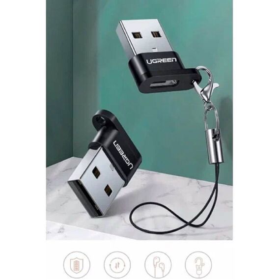 USB ადაპტერი UGREEN US280 (50568), USB-A Male To Type-C Female Adapter, Black
