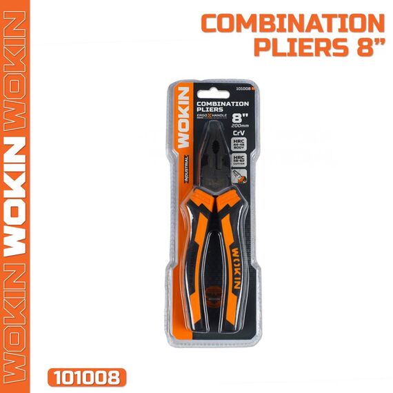 ბრტყელტუჩა Wokin 101008, 200mm COMBINATION PLIERS (INDUSTRIAL), Black/Orange