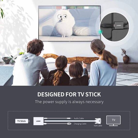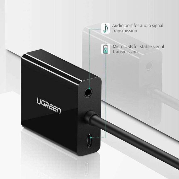 ადაპტერი UGREEN HU-516 (20694), HDMI to VGA Adapter With 3.5mm, 30cm, Black
