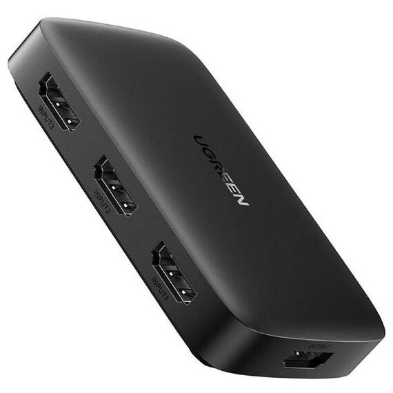 ადაპტერი UGREEN CM332 (80125), HDMI Switch 3 In 1 Out 4K HDMI Switcher With Remote Control, Black
