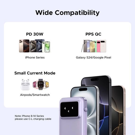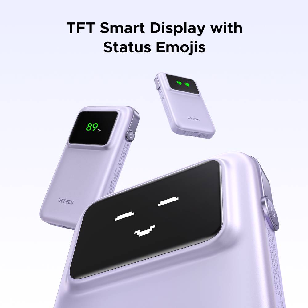 პორტატული დამტენი UGREEN PB511 (35604B) Uno, 10000mAh 30W, USB, Type-C, Power Bank With Built In Cable, Purple