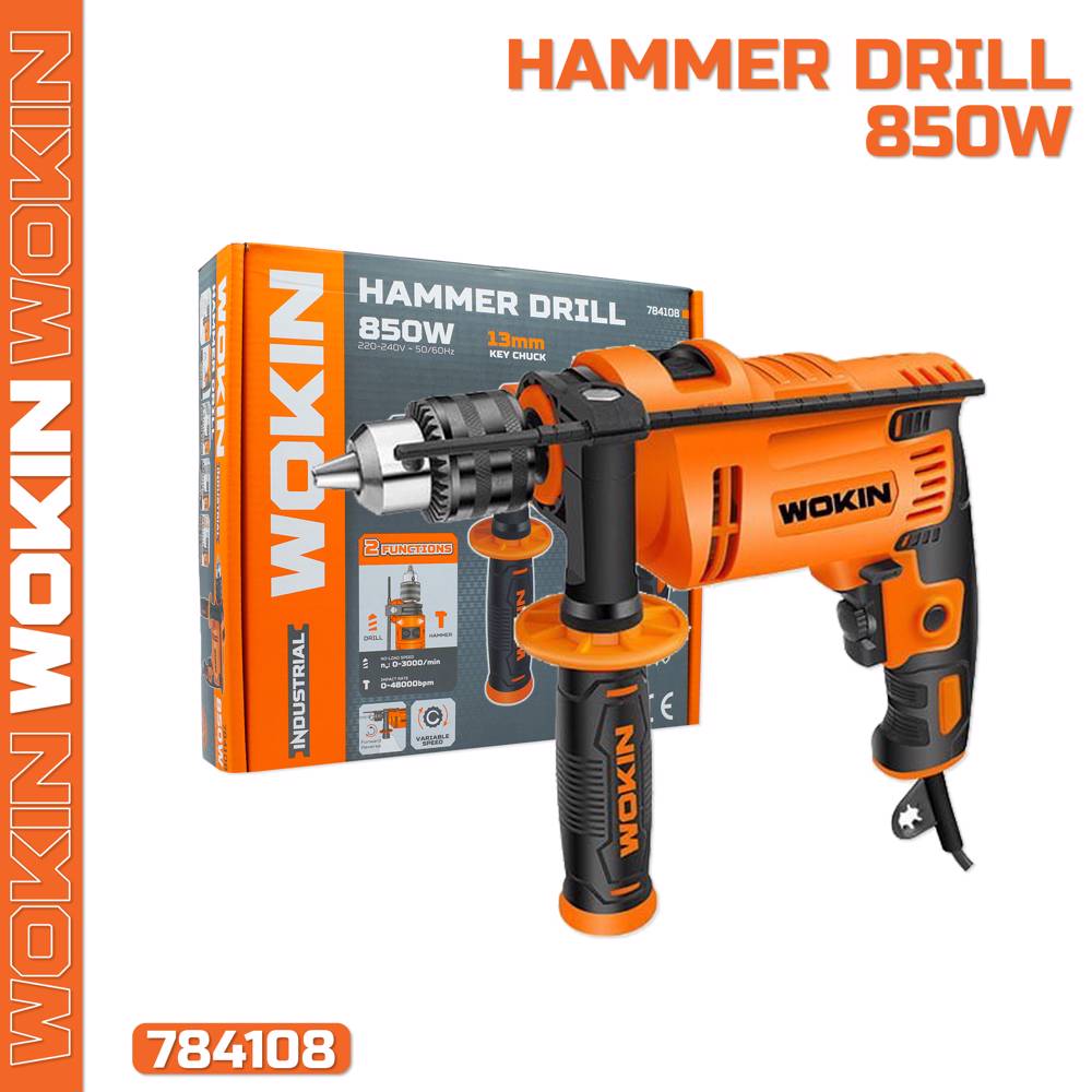 ბურღი Wokin 784108, 850W, 3000Rpm, Hammer Drill, Black/Orange