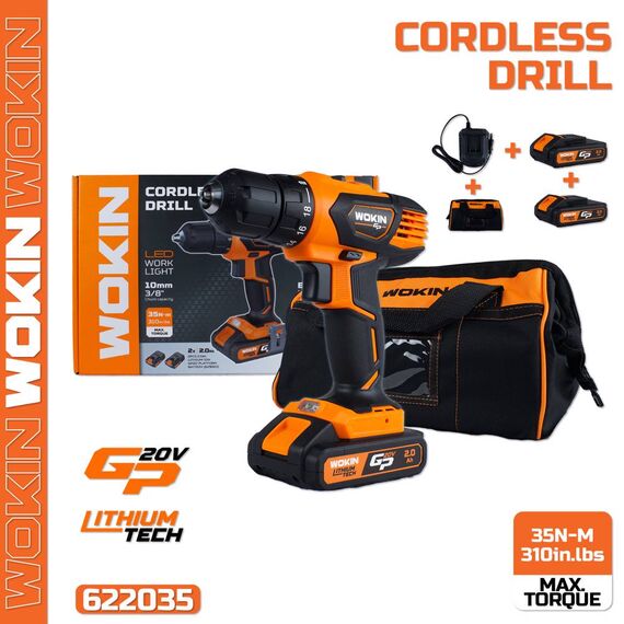 აკ. ბურღი-სახრახნისი Wokin 622035, 1500Rpm, 20V LI-ION CORDLESS DRILL Black/Orange