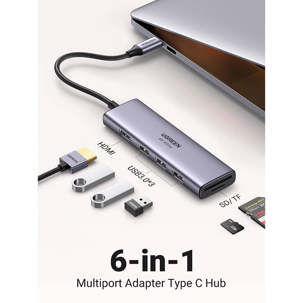 USB-C ჰაბი UGREEN CM511 (60383) Type-C, USB, HDMI, SD/TF, Silver