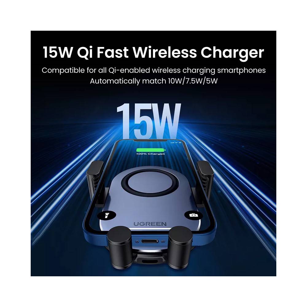 მობილურის დამტენი UGREEN CD256 (40118) Wireless Car Charger, 15W Auto Induction Phone Holder, Black