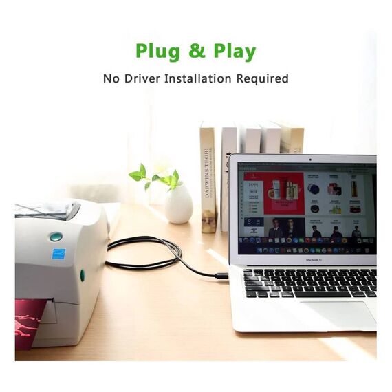 პრინტერის კაბელი UGREEN US210 (10372) USB-B to USB-A Print Cable, 2m, Black