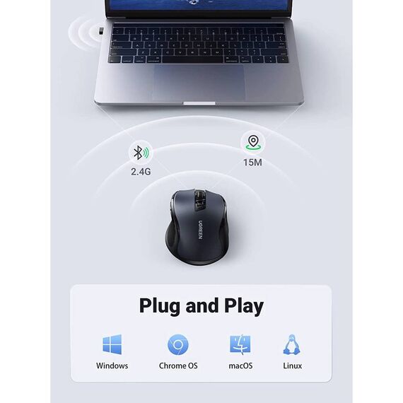 მაუსი UGREEN MU006 (90545) Ergonomic Wireless 2.4G Mouse, 4000DPI, Silence Design, Black
