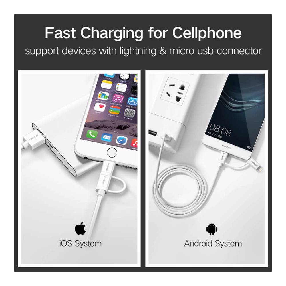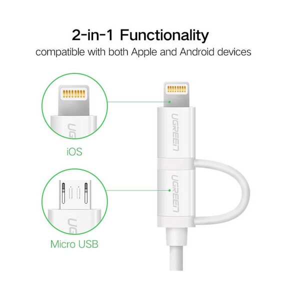 USB კაბელი UGREEN US178 (20876), USB to Lightning/Micro USB, 1m, White