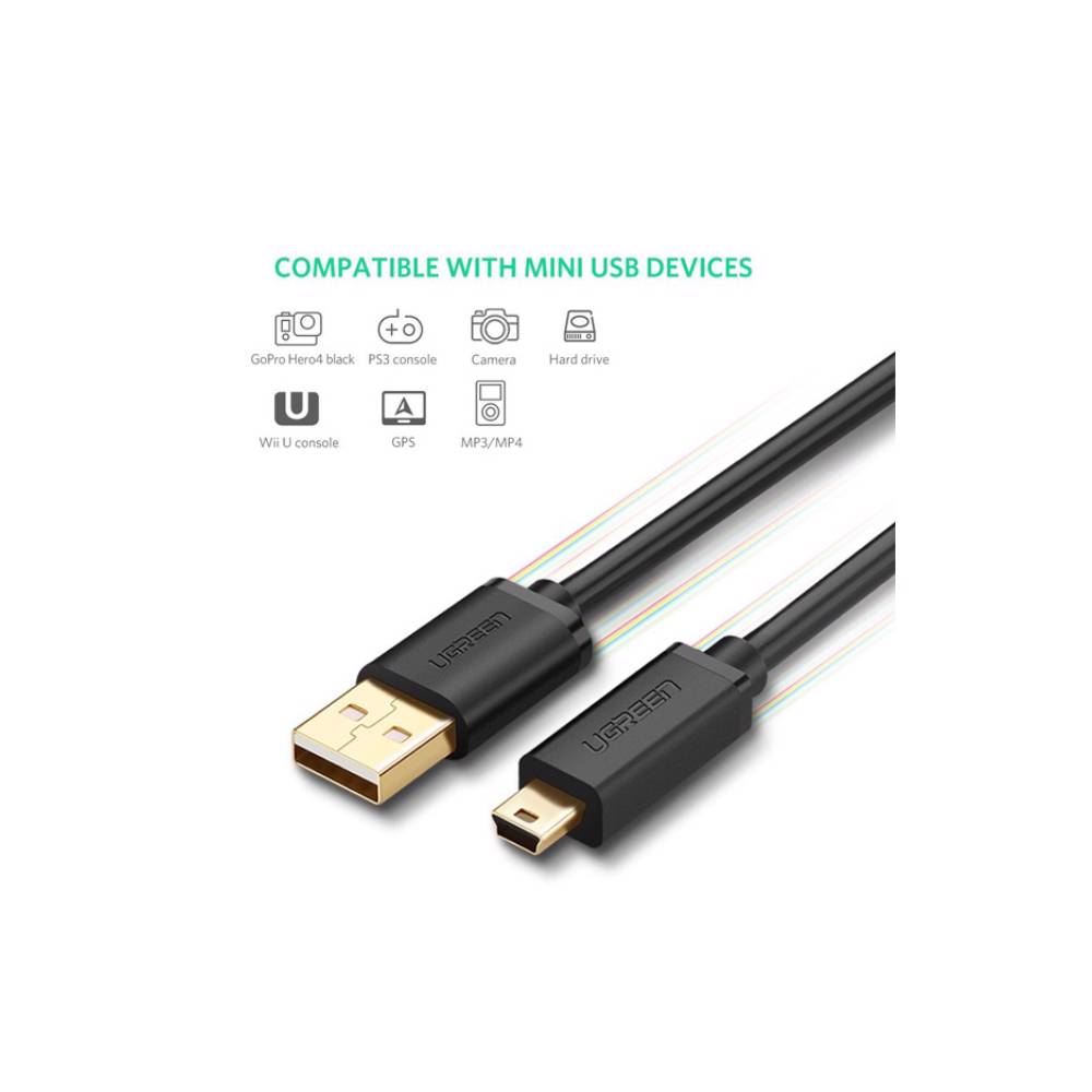 USB კაბელი UGREEN US132 (10386) USB 2.0 A Male to Mini 5 Pin Male Cable 3m (Black)