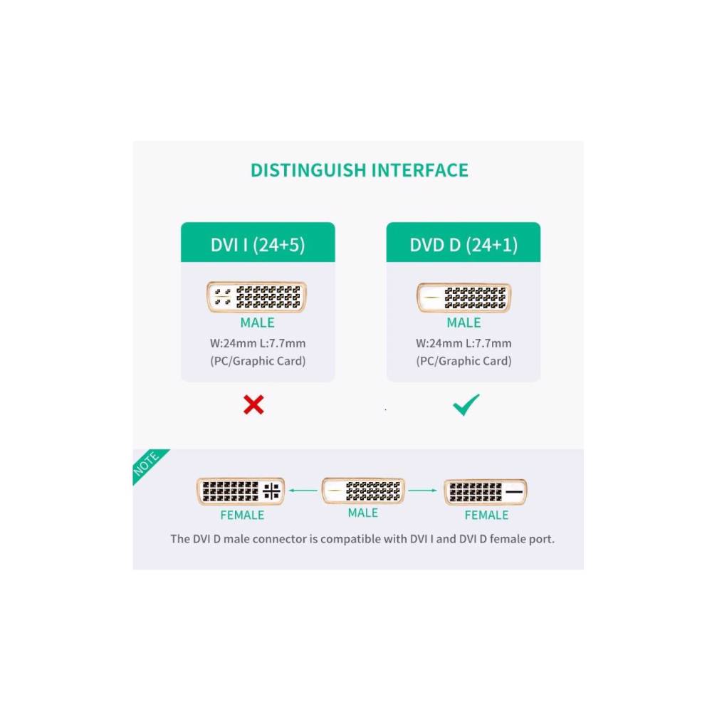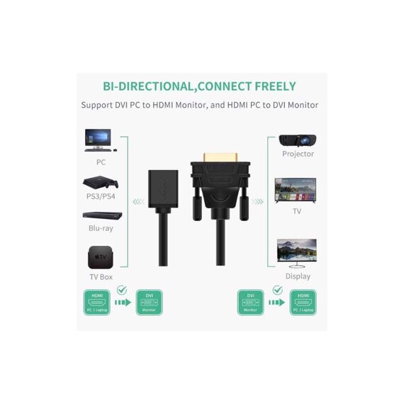 ადაპტერი UGREEN 20118 DVI Male to HDMI Female Adapter Cable, 22cm, Black
