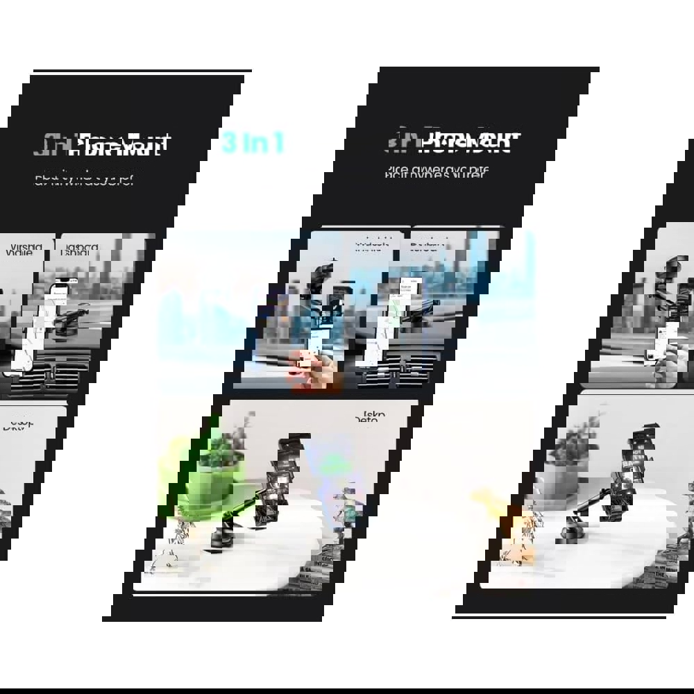 მობილურის დამჭერი UGREEN LP200 (60990B), Gravity Phone Holder With Suction Cup, Black