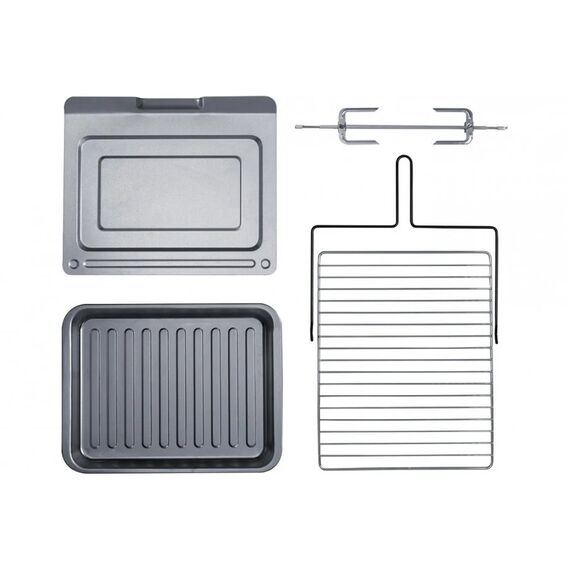 კომპლექტაცია (ელ.ღუმელი): 1 ლანგარი (ოთხკუთხედი), მეტალის 1 ბადე, შამფური