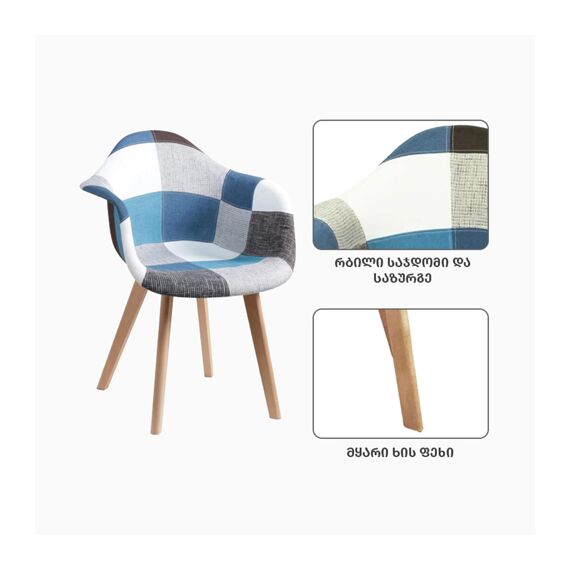 აღწერა: მოდერნის სტილის სასადილო სავარძელი – ჰარმონიული ნაზავი ნათელი ფერებისა და გეომეტრიული ნიმუშების. ეს თანამედროვე სავარძელი გამოირჩევა კომფორტული, რბილი ნაჭრით გაწყობილი ზედაპირით და მტკიცე ხის ფეხებით. იდეალურია სივრცის შემოქმედებითი და მყუდრო იერის მისაცემად