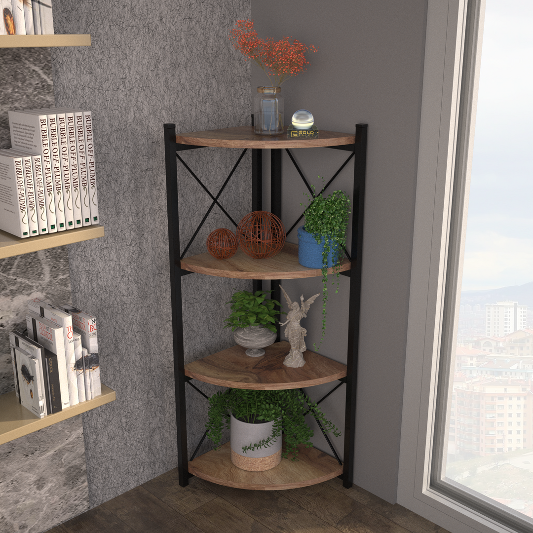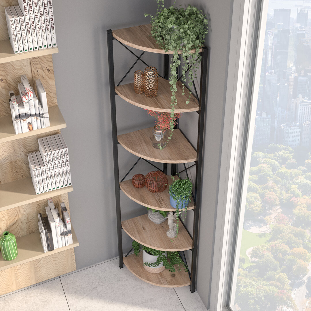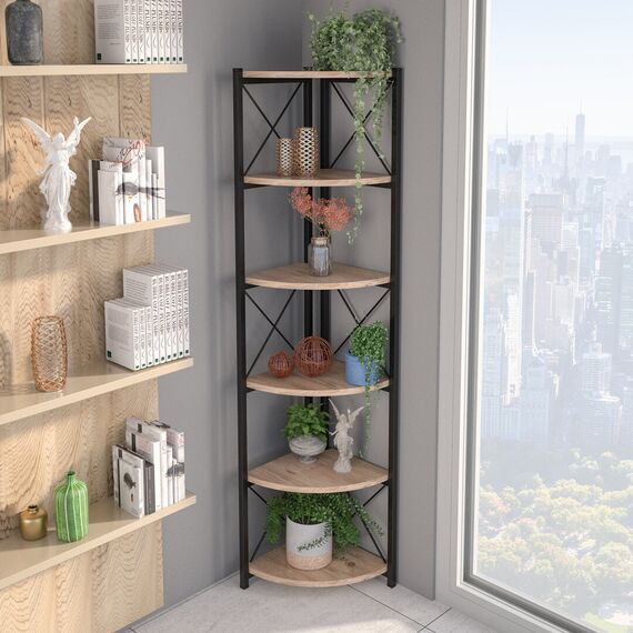 კუთხის 6-დონიანი თარო ფიჭვის ფაქტურით (GF974)
