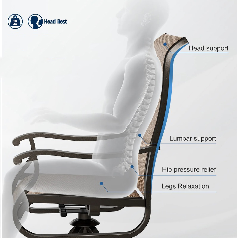 · 360 გრადუსით ბრუნვადი სკამები, რბილი დასაჯდომი, საზურგე და გლუვი სახელურები ამ სკამს უფრო კომფორტულს ხდის.