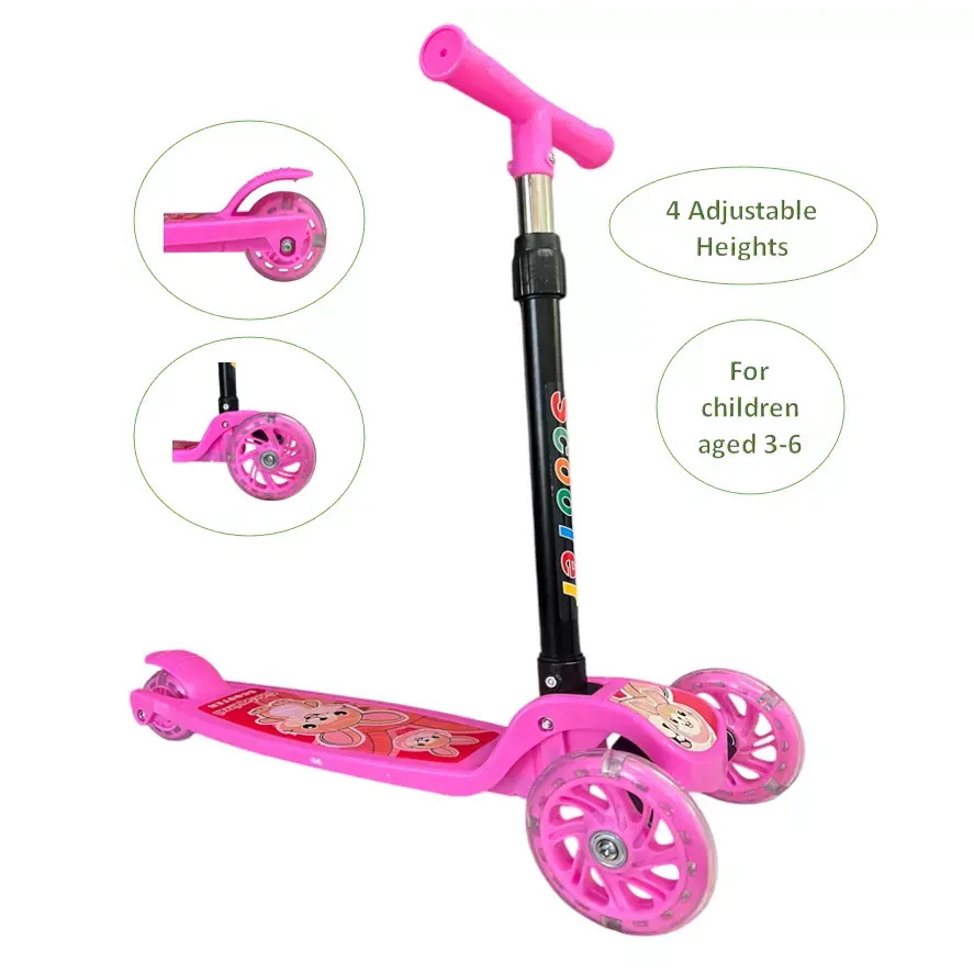 საბავშვო სკუტერი მანათობელი ბორბლებით ვარდისფერი #2 CTRIM