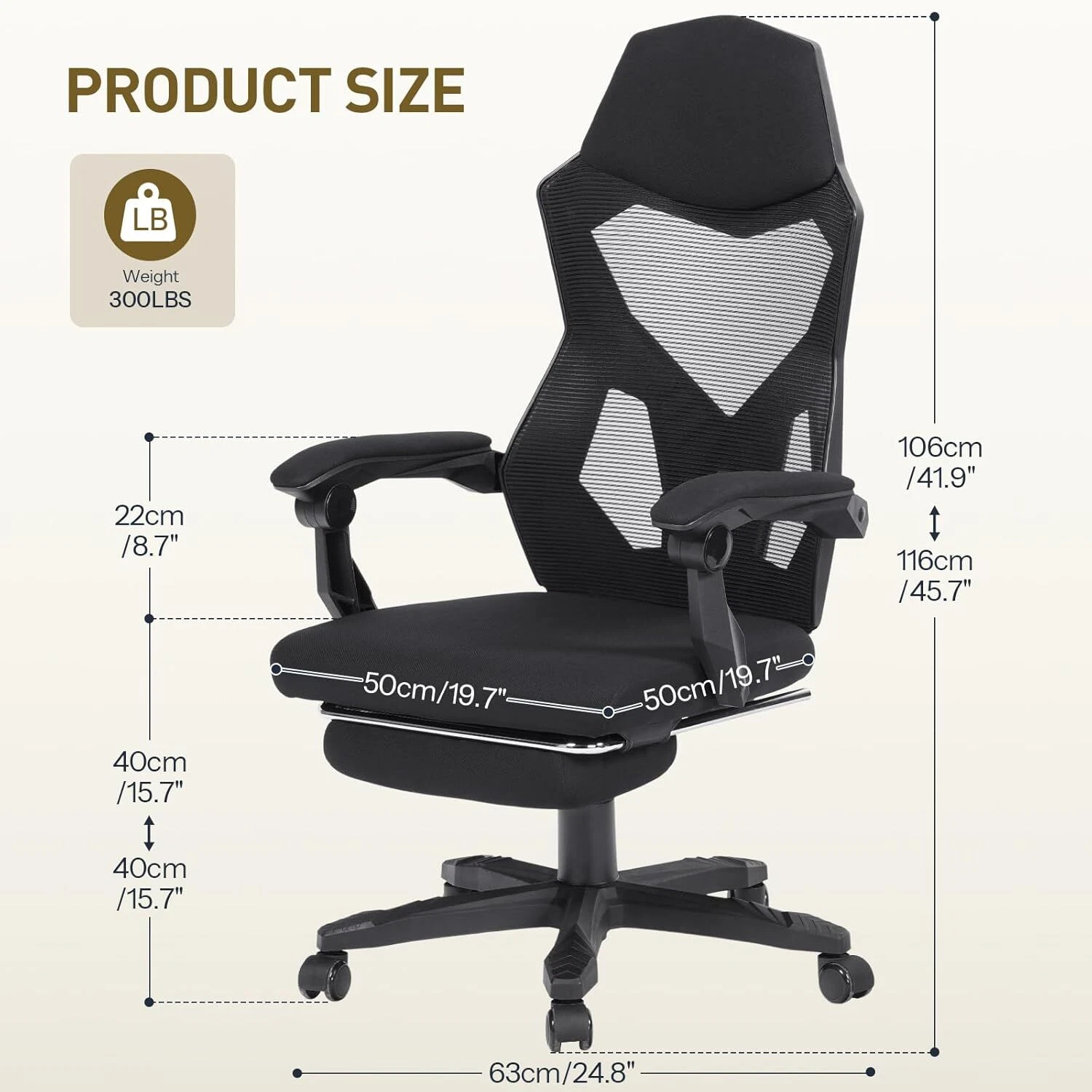ზომა: 108-118X61X60 (სიმაღლე,სიგანე,სიღრმე)