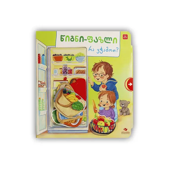 დამატებითი აღწერა: დაეხმარე ლიზასა და სანდროს ბოსტნეულისა თუ რძის პროდუქტების შერჩევაში. ამ წიგნში ბავშვი 5 სიუჟეტურ ნახატსა და ფაზლის 10 ნაწილს იპოვის. საკვების დასახელება და ფაზლის ნაწილების სათანადო ადგილას განთავსება მას გარემოს აღქმასა და სიტყვების დასწავლაში, ასევე, მოტორული და ლოგიკური უნარების განვითარებაში დაეხმარება.