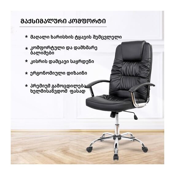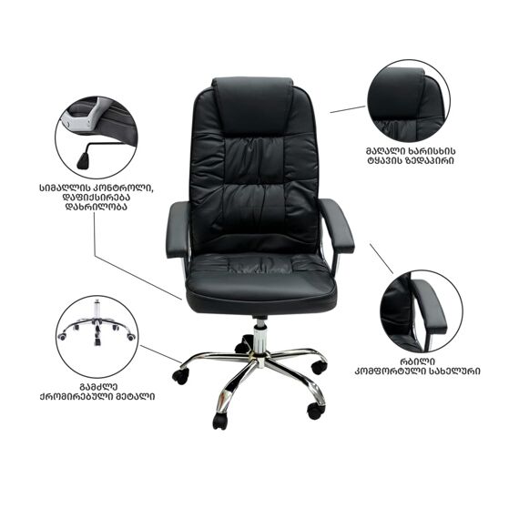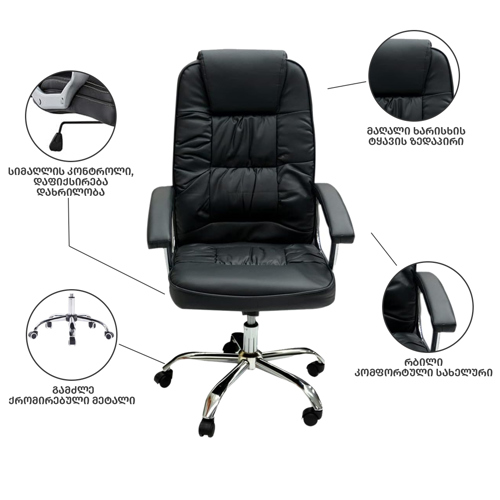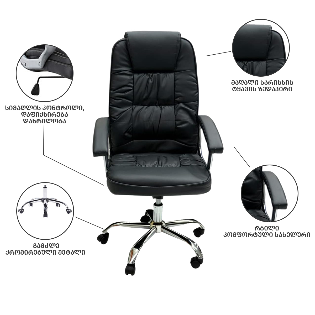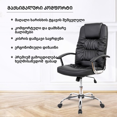 საოფისე სკამი ტყავის, გორგოლაჭებზე (HC-B05) AJ-OC05(BLACK)