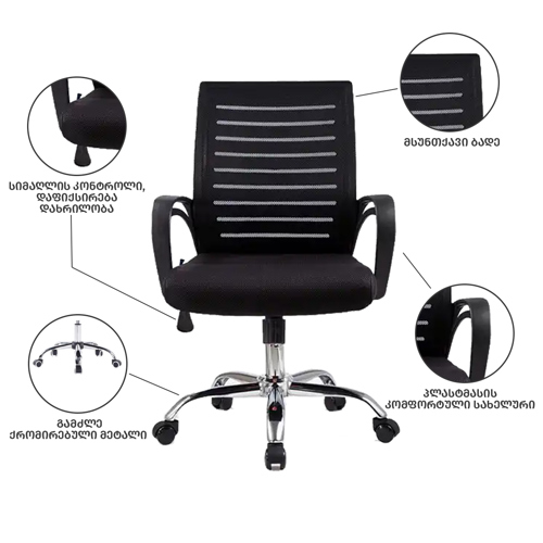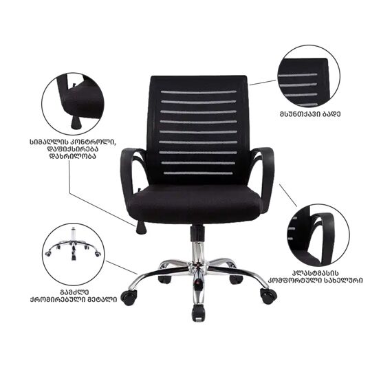 სკამის სიმაღლე (რეგულირებადი): 89-99 სმ