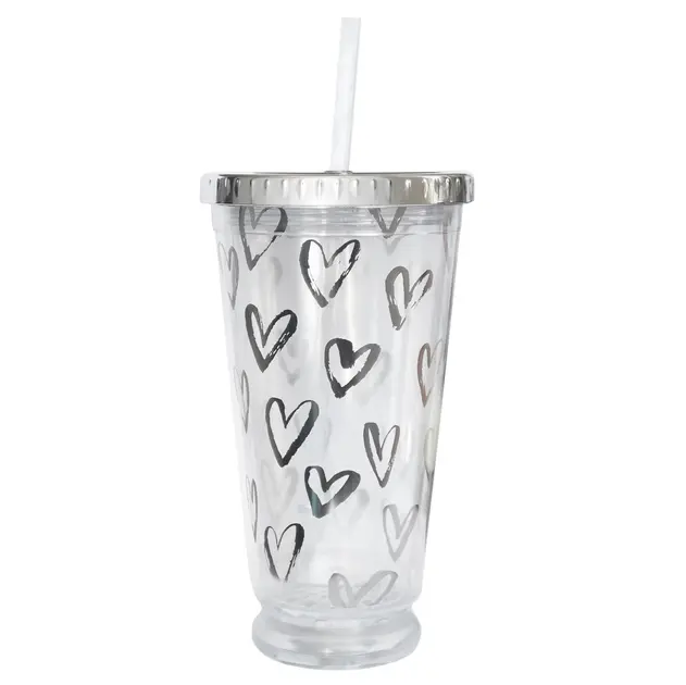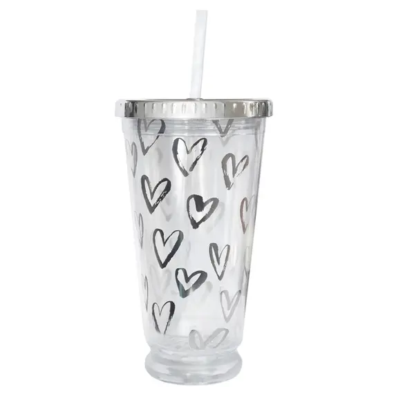 წყლის ბოთლი Tumbler with straw LED "Hearts", 490 ml 707045