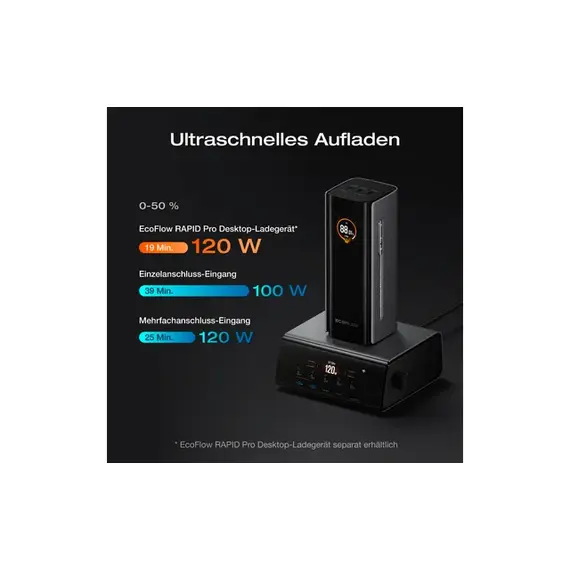 პორტატული დამტენი EcoFlow RAPID Pro Power Bank 20,000mAh, 230W, 100W Built-in Cable