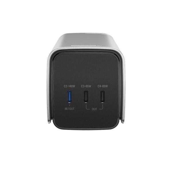 პორტები: 3 USB-C პორტი + ჩაშენებული კაბელი (სულ 300 W)