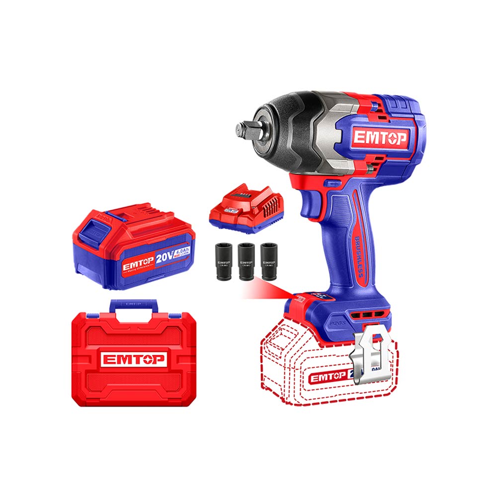 ქანჩდამჭერი Li-Ion დარტყმითი 850ნმ 20ვ 4Ah 1/2" ECIWL2085