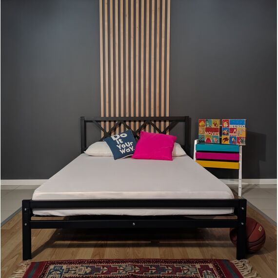 ორადგილიანი მეტალის საწოლი შავი 140*200 (MM1056)