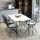 კომპლექტში შედის: მაგიდა და 4 ცალი მეტალის სკამი.